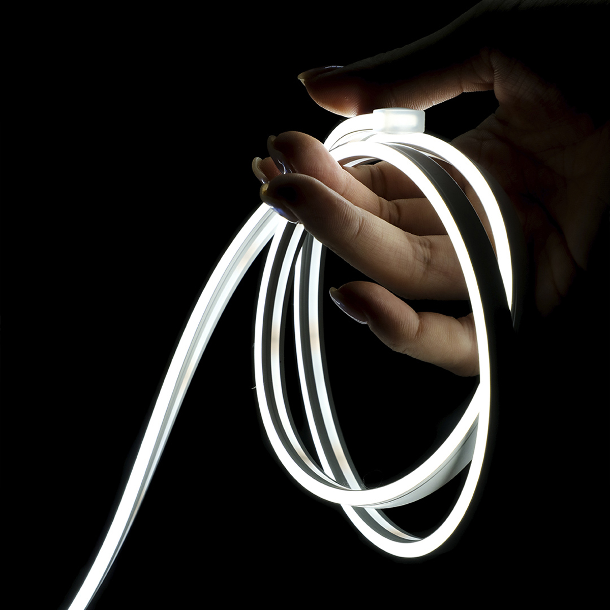 Esta fita LED néon flexível apresenta uma luz uniforme, clara e sem pontos visíveis graças aos seus 240 LED/m. A sua profundidade de apenas 4,5 mm é ideal para espaços e encaixes reduzidos. Graças a isso, enfraquece menos o móvel ao fazer o rasgo e é perfeito para iluminar de forma funcional os espaços sem aumentar o consumo.