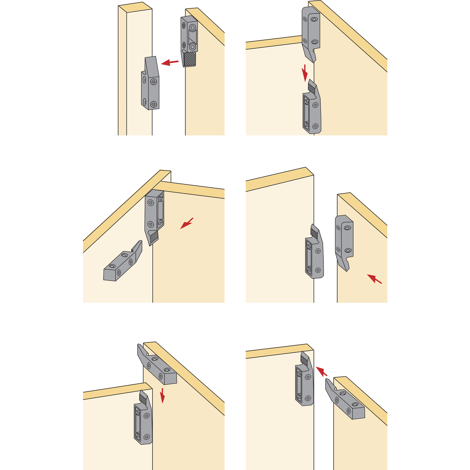 - Em todos os casos, o ligador pode ser aparafusado em paralelo ou em ângulo reto com a parte da fáscia ou do revestimento