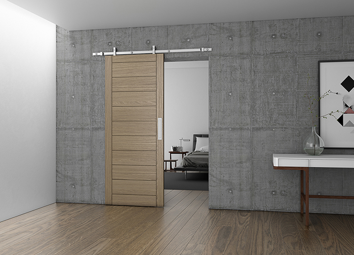 Sistema para porta de correr em madeira ou metálica de fixação à parede.