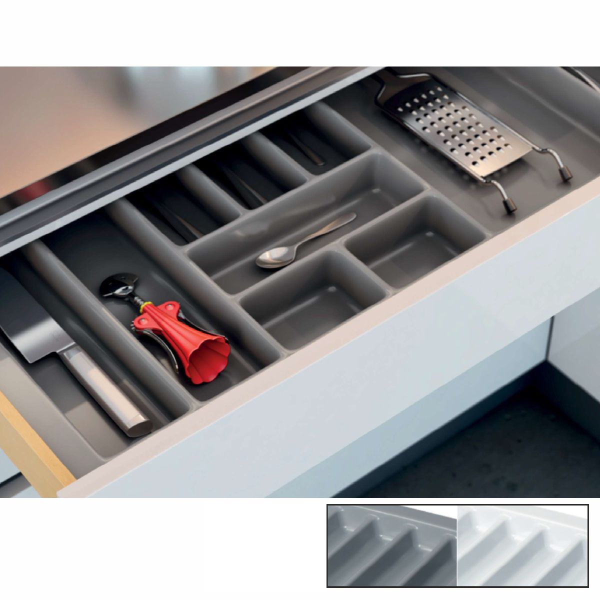Porta-talheres em plástico ABS branco para gaveta de 450 mm